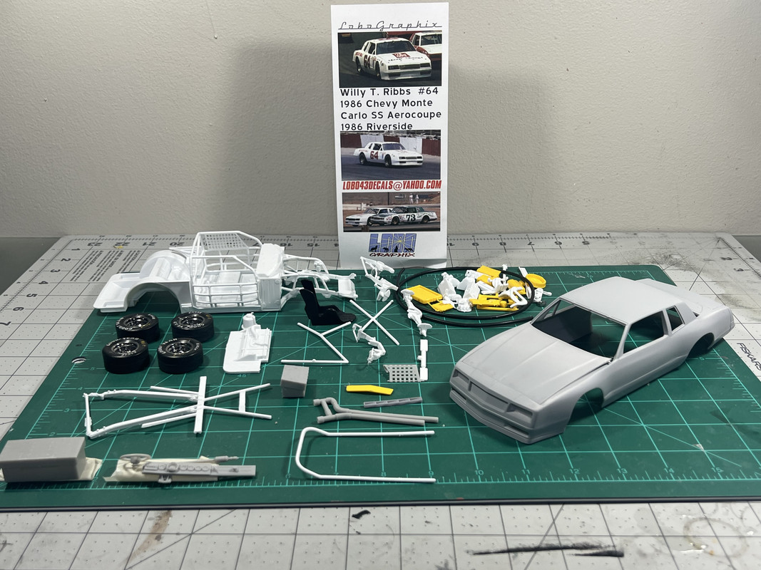 I have started work on my next project. A replica of the #64 Red Roof Inns Monte Carlo that Willy T Ribbs drove for DiGard Racing at the 1986 Budweiser 400 at Riverside Raceway in June of that year. I started working on the body,moving the fuel filler to the right side.I still have to do a few more things to the body before getting it ready for primer and paint.The kit is the old Monogram Monte Carlo Aero Coupe.The wheels and tires are from a Salvinos Jr Buick Regal kit and the decals are LOBO Graphix.It's going to be built basically box stock with a few details added.Hopefully more progress soon