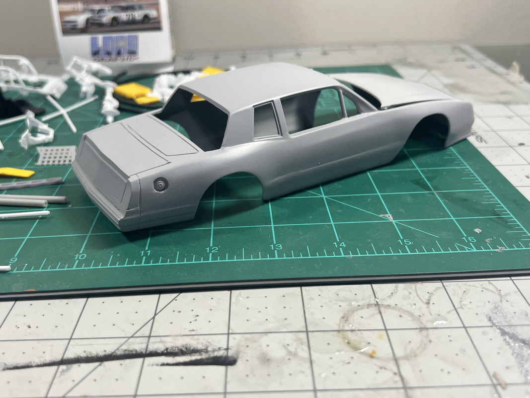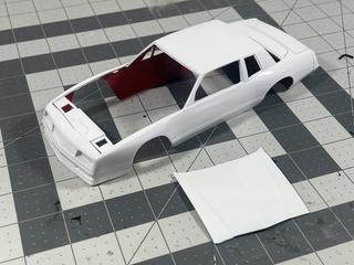 I started back working on this one today.It has been put aside all this year for some non-racing modeling projects.I decided to replace the body with a white body from a Salvinos Jr kit. I started with the chassis from the same kit too.Just like the other body,I moved the fuel filler to the right side,I added a bar to the passenger side window and filled in the hood and trunk holes since they will be replaced with either decals or photo etched items.It is primed and ready for paint.I plan to add a few 3d printed parts from Jaye's Model Garage.It will still be built mostly box stock.I hope to have more updates on it soon🤞