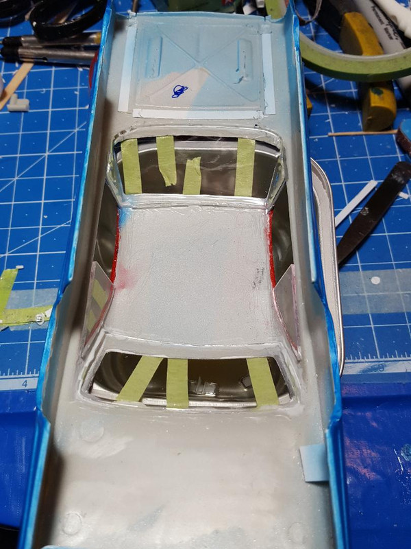Made a way to mount the tires on the build the easy way. It would have been very time consuming to have scratch built a suspension like the real car had to do it. That's another reason why I glued the hood shut.