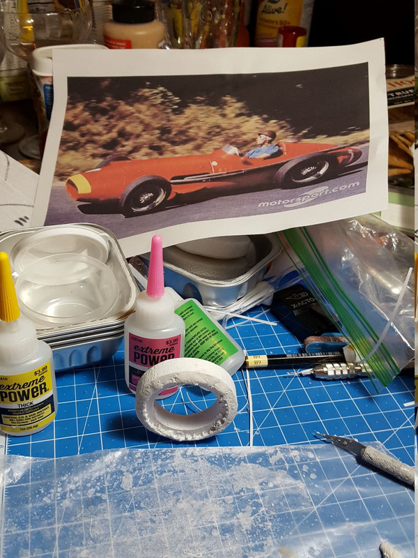 Been away from the build a few days but got back to it yesterday. Putting epoxy putty on the sides of the left front tire.