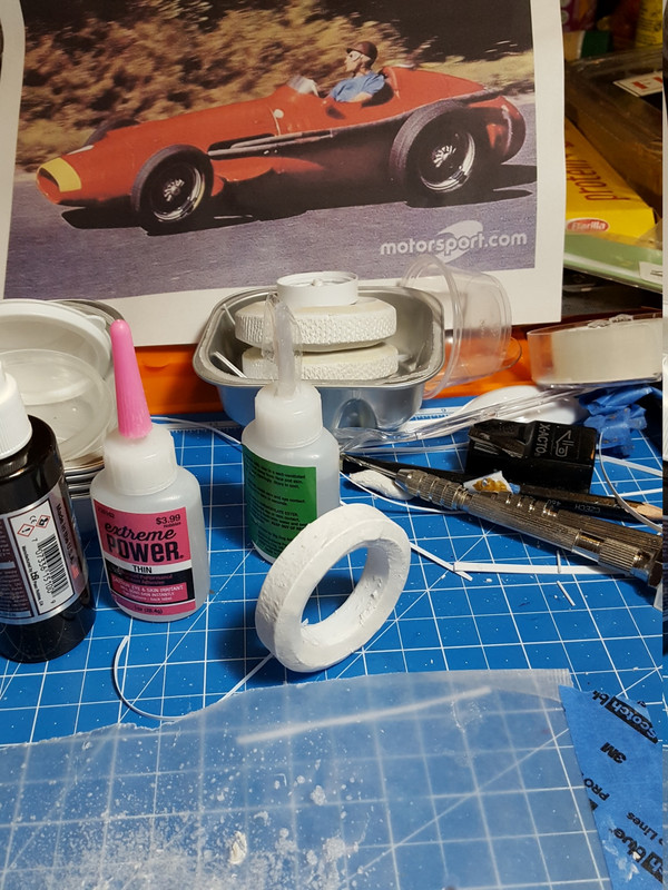 Been away from the build a few days but got back to it yesterday. Putting epoxy putty on the sides of the left front tire.