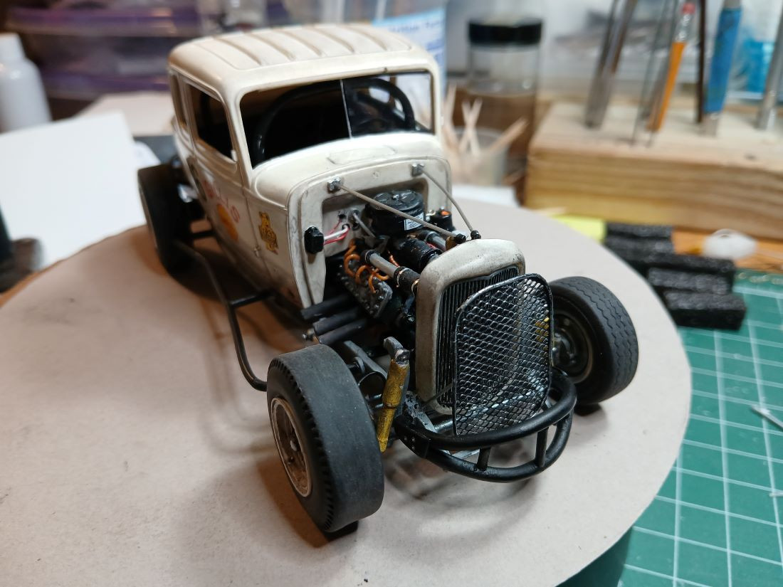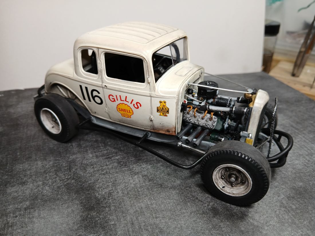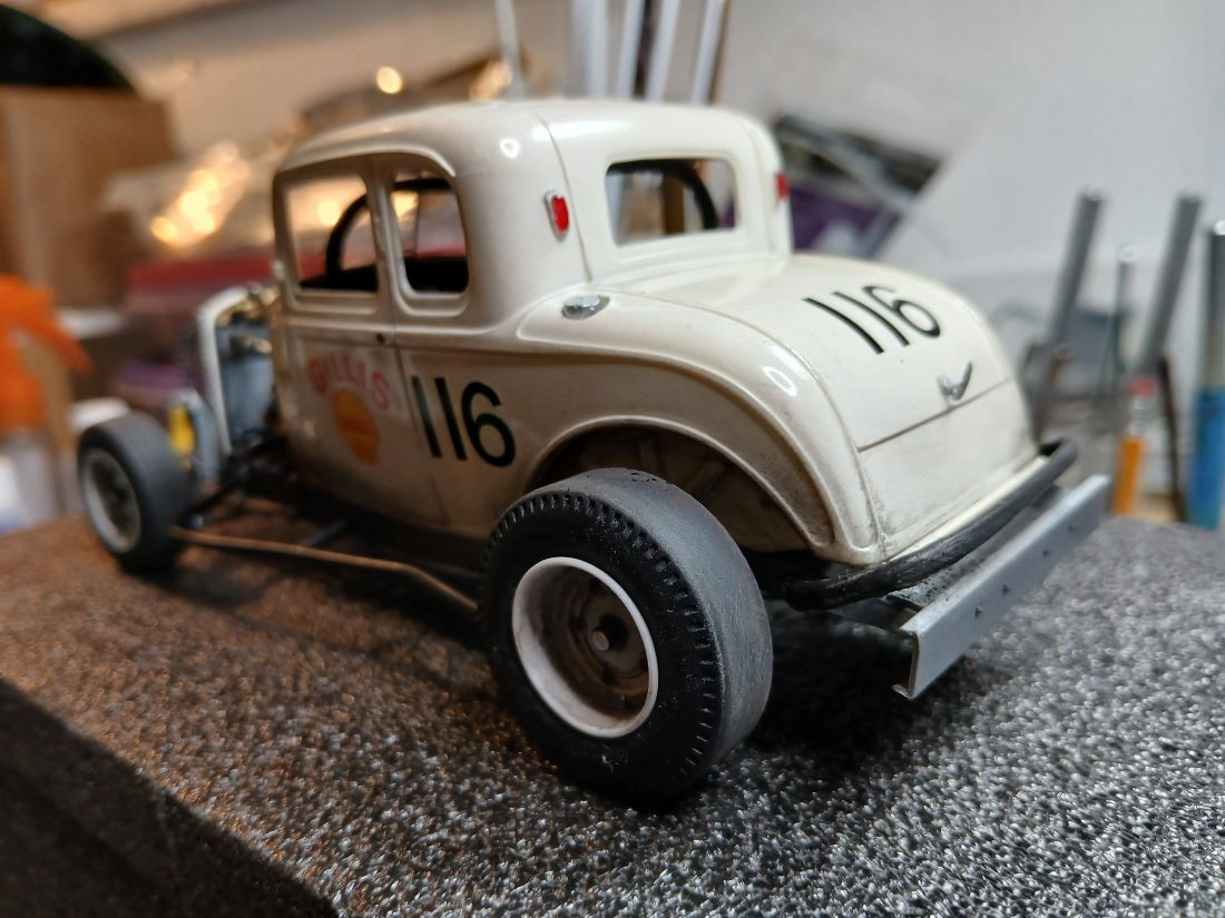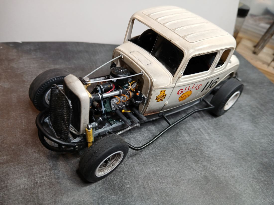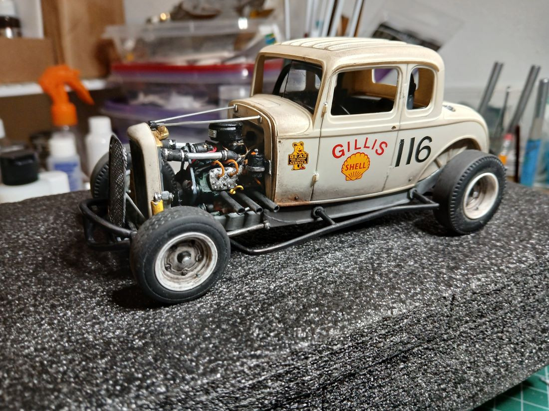 Built a Revell '32 Ford 5 window, with a '40 Ford flathead. Fantasy tribute to the corner gas station.>